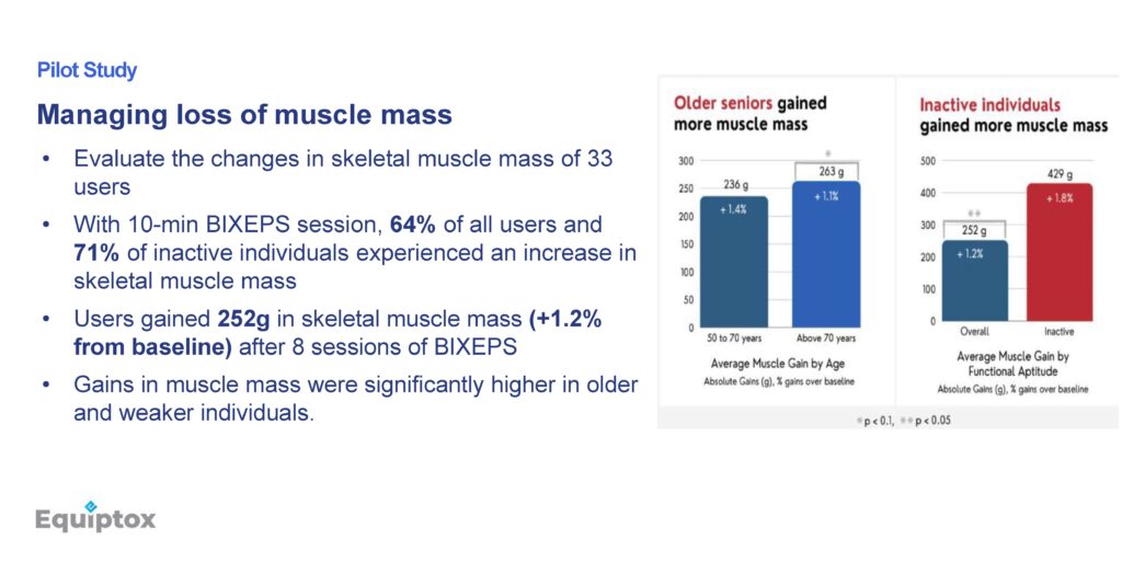From the age of 30, muscle mass naturally declines by 3-8% per decade, leading to reduced strength and mobility. For individuals with limited ability to exercise—such as older adults or those recovering from injuries—BIXEPS provides a safe and effective way to stimulate muscle growth without physical strain. Studies show that users gained an average of 252g in muscle mass over eight weeks of treatment.