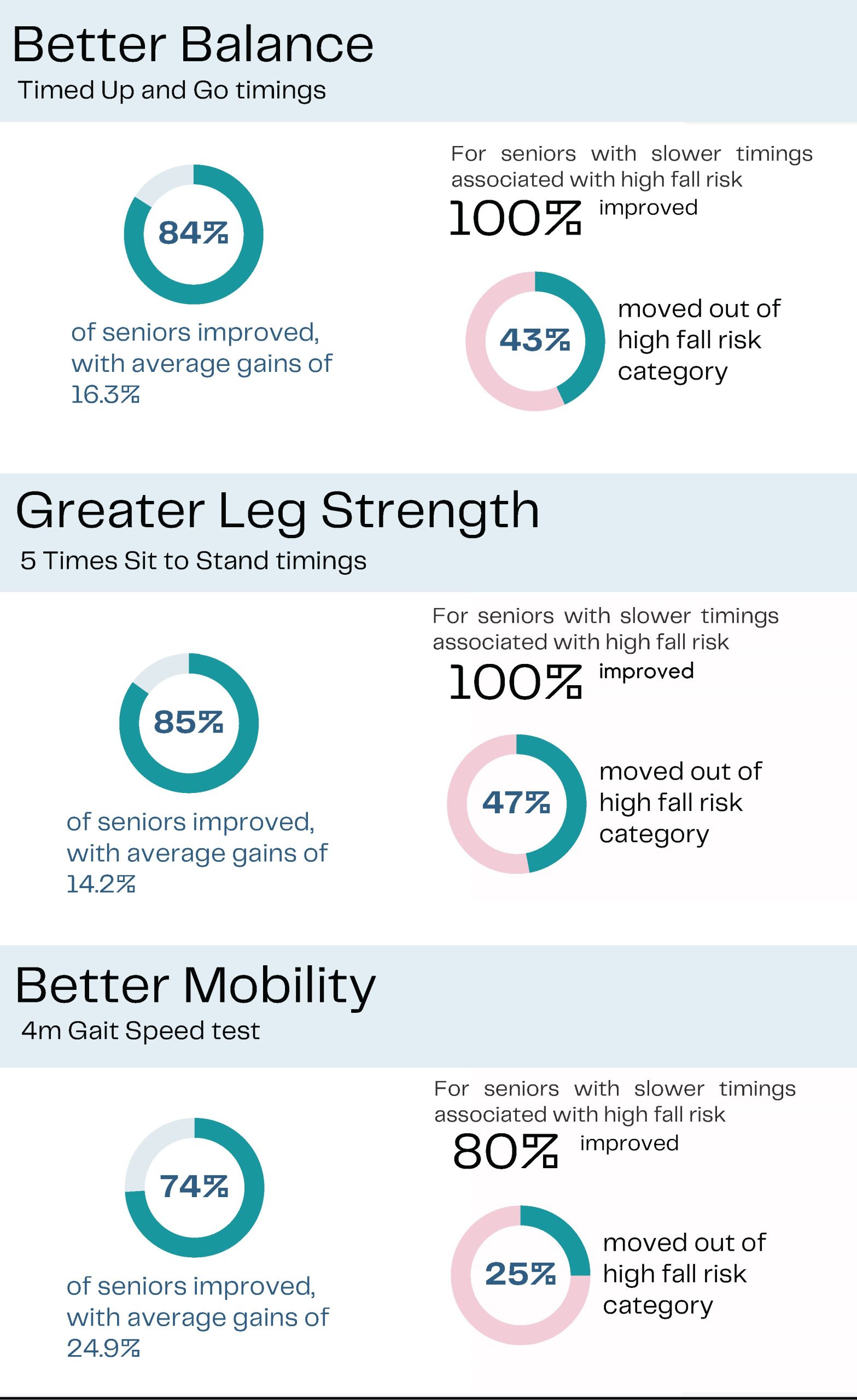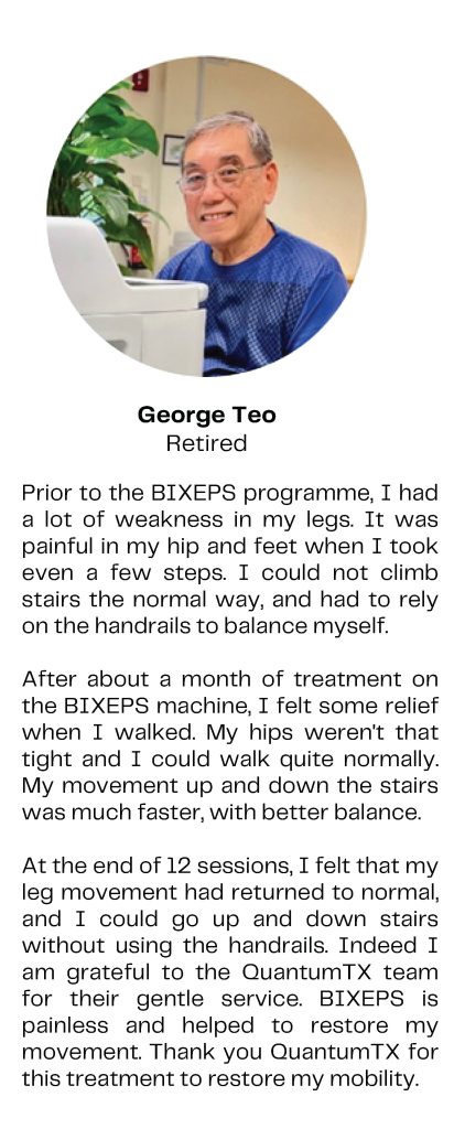 Maintaining mobility is key to independent living. BIXEPS therapy enhances gait, balance, and lower limb strength, which is especially beneficial for elderly individuals or those with limited mobility. Clinical studies show that users over 60 experienced improved walking speed, stability, and strength after 20 weeks of treatment.